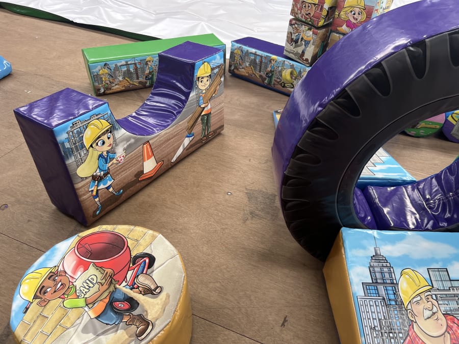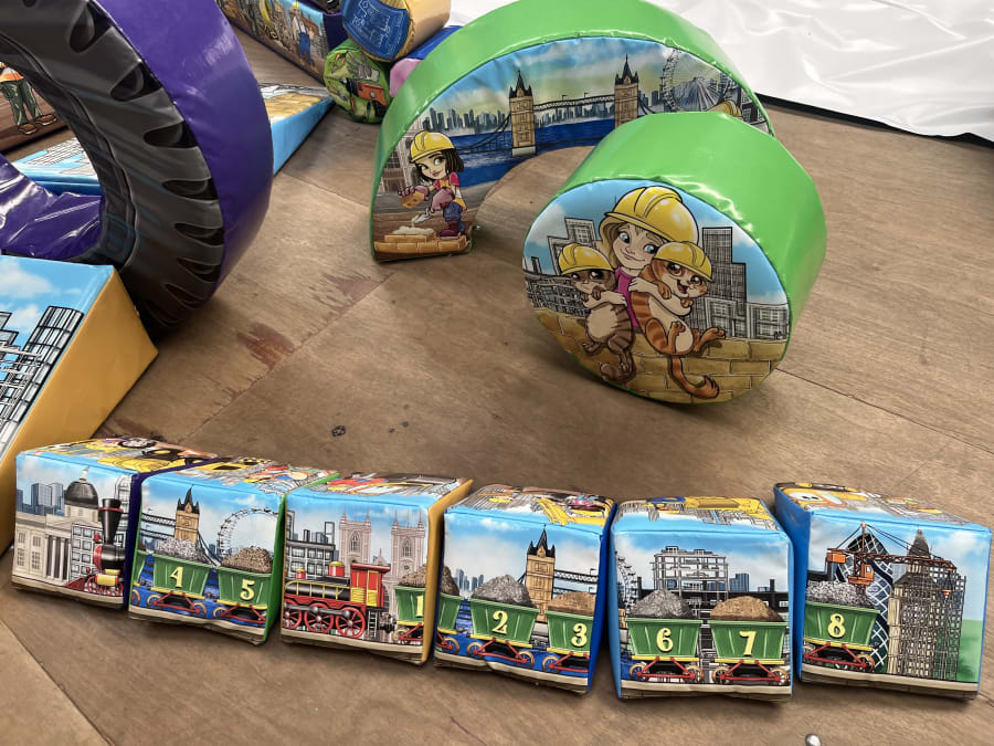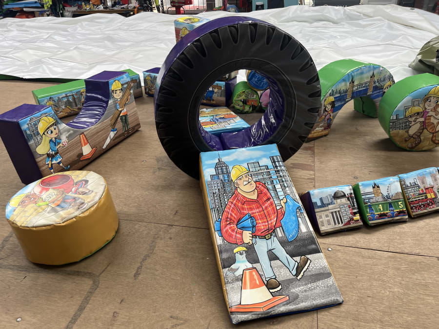 - 23 x Construction themed soft play shapes of various dimensions and shapes