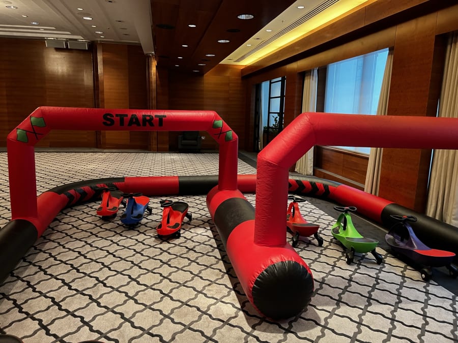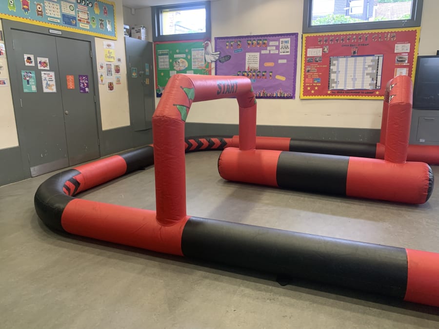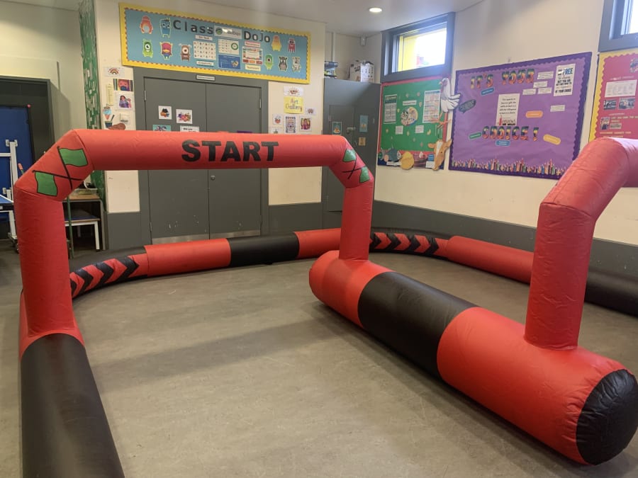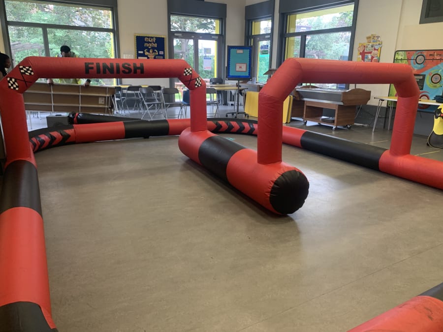 Having a racing car themed party in London? Hire our inflatable race track which is perfect to hire to keep all vehicles on track and contained!