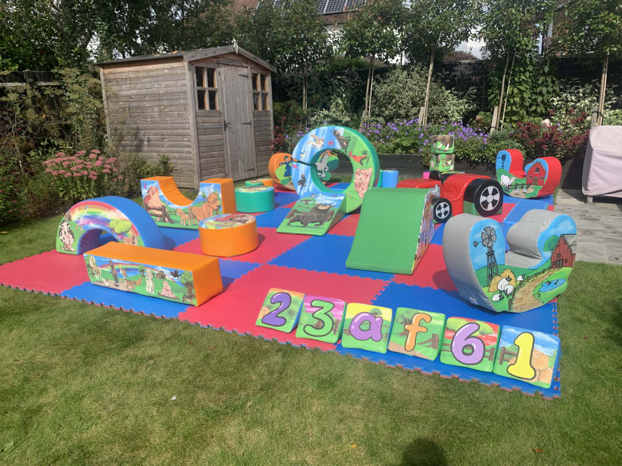1. This farm themed soft play package can be hired for use indoors and outdoors.