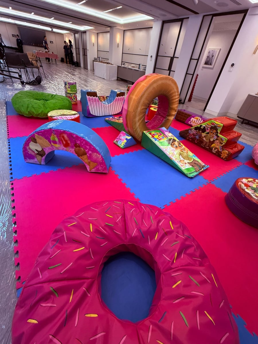 1. This sweet themed soft play package can be hired for use indoors and outdoors.