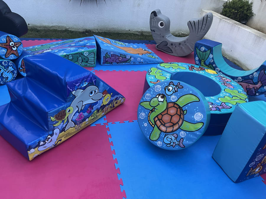 This gorgeously active soft play area is really great for encouraging active, engaging play - a lot of the shapes are very large and solid so that actual climbing, balancing, stacking, building can take place. It's an actual soft play area for children to enjoy, not just pretty for photos. The children are going to have so much fun on it! Why not add our very large dolphin prop - Large Dolphin - Soft Play Event Prop.